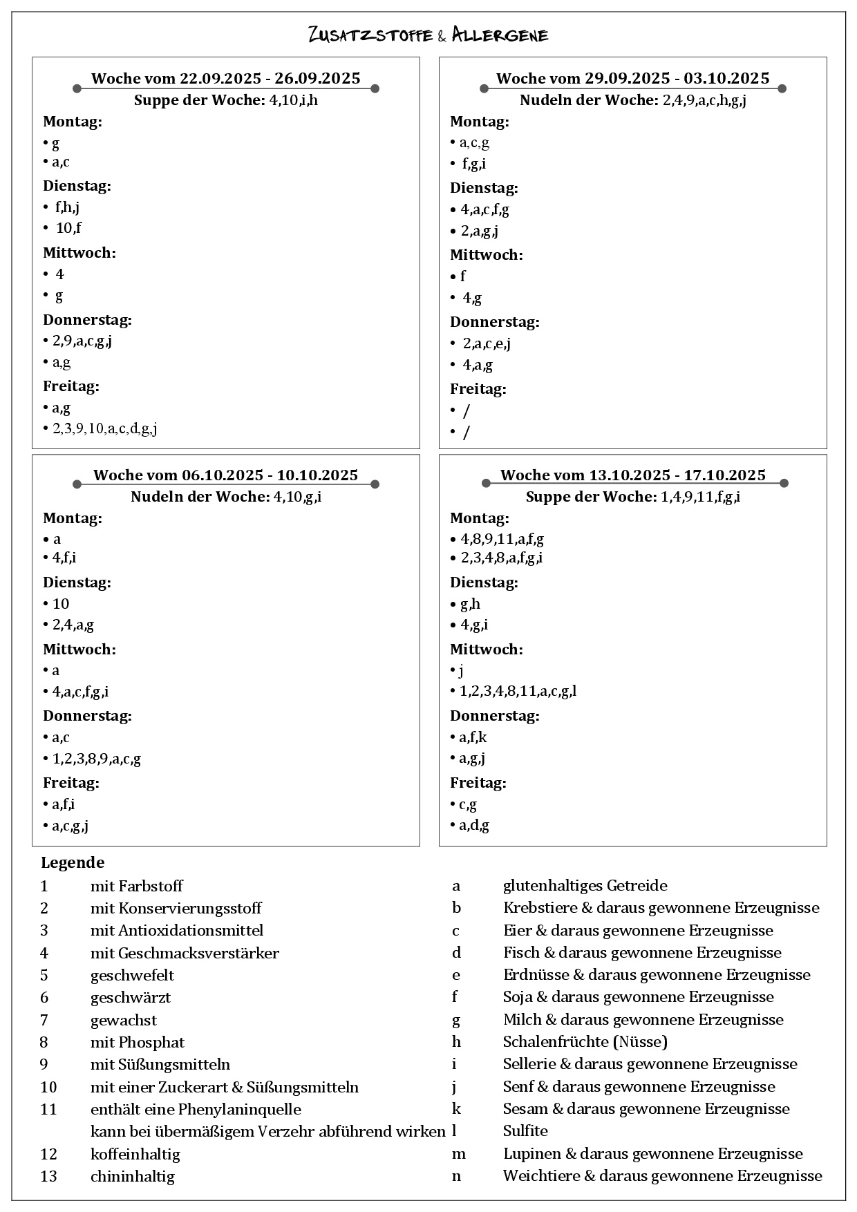 Nebst unserer Speisekarte haben wir täglich 2 Mittagsgerichte (1 davon mit Fleisch, 1 ohne) sowie unser Wochengericht im Angebot. Den Speiseplan dazu habt ihr bestimmt schon oben auf dieser Seite gesehen.